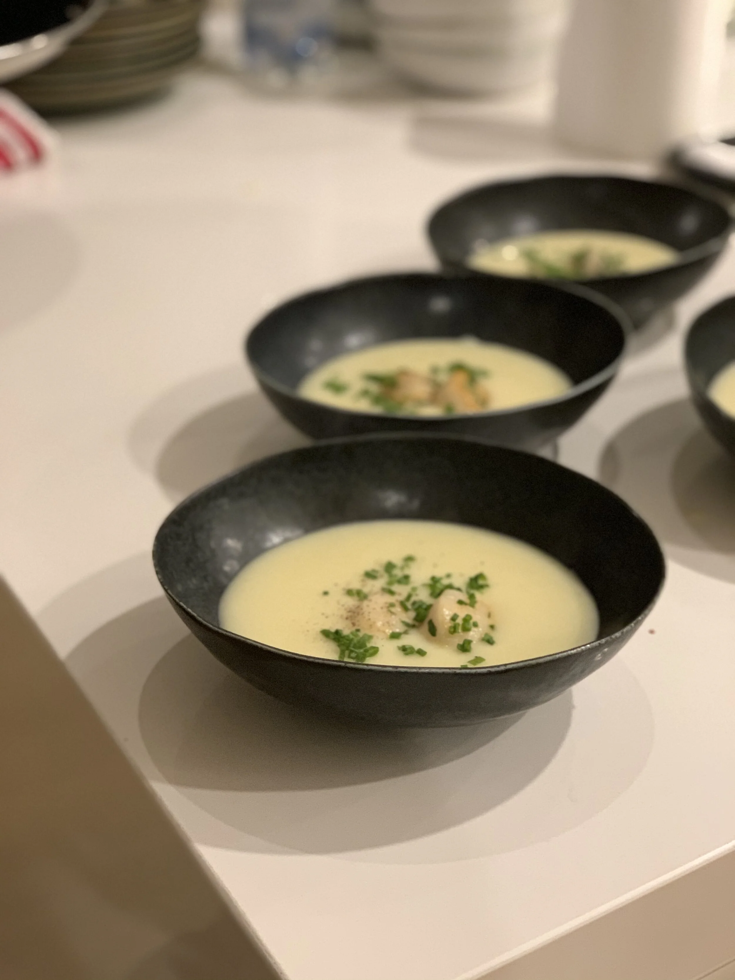 Classic potato and leek soup with scallops